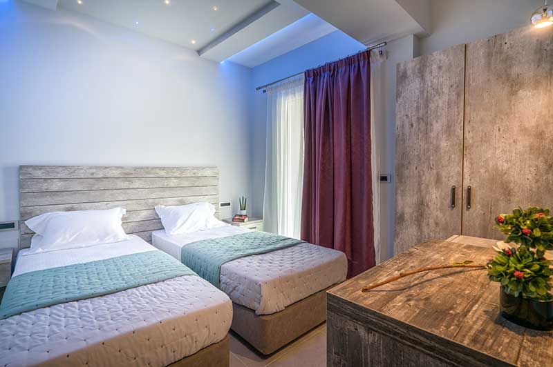 Δύο μονά κρεβάτια σε κάθε υπνοδωμάτιο που μετατρέπονται εύκολα σε διπλό κρεβάτι
